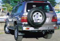 Бампер, оборудованный кронштейном для канистры и кронштейном для запасного колеса. Задние бамперы могут быть окрашены в цвет Вашего автомобиля. Задний бампер для Toyota LandCruiser 100 окрашенный в цвет кузова.